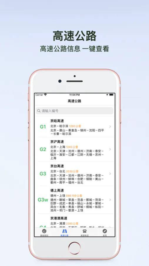 此软件方便大家在旅途中快速根据英文编号查找高速的中文名称,途经城市。