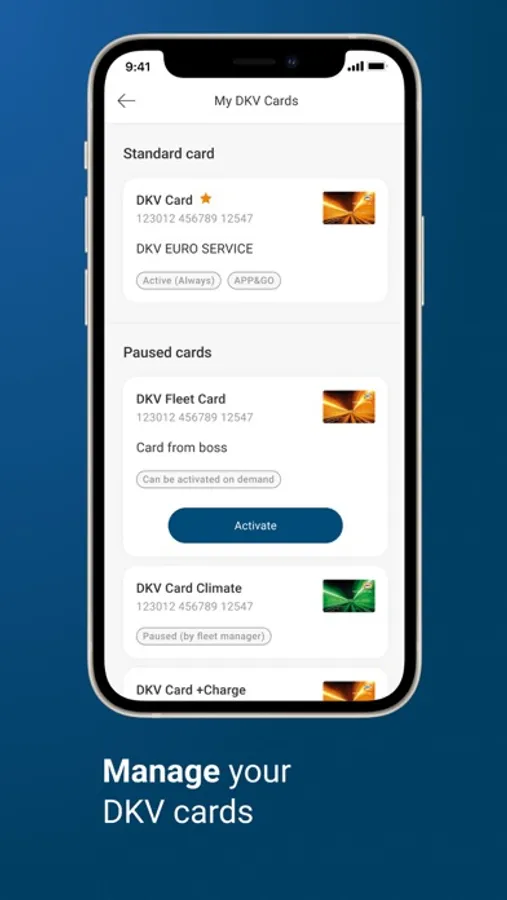 The activation mode "on demand" offers the possibility to activate cards only for the period in which they are used for a transaction. During the rest of the time, the card is inactive, and transactions will be declined. Simply start the 60-minute time window during which fuel can be purchased. After the time has expired, the card is automatically deactivated again.