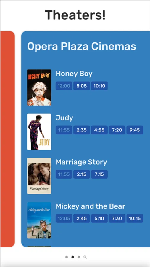 Just flip through your favorite theaters to see what's playing. Tap on a movie for cast, runtime, rating, and more.