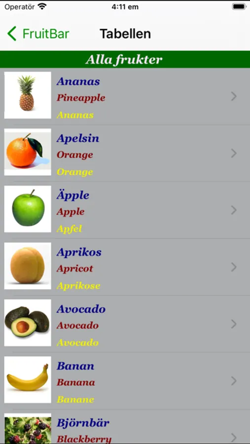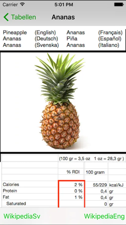 - 40 frukter och bär med kalorier, fett, vitaminer,