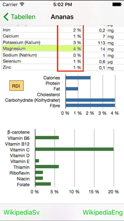 kolhydrater, mineraler och näringsämnen. Bild, tabeller och diagram.