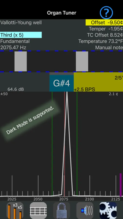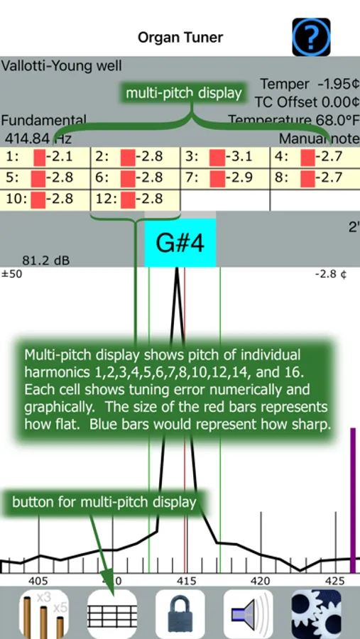This app is for professional pipe organ builders and technicians. It addresses the special tuning needs of building and maintaining pipe organs.