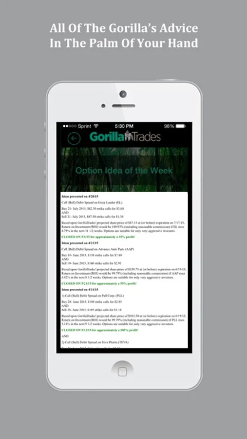 GorillaTrades powerful technology is now available at your fingertips! Receive GorillaTrades exclusive Stock Picks, Options Picks, Newsletter and much more on the new GorillaTrades app! The Gorilla’s stock market advice has never been more accessible! Browse The Gorilla’s recommendations with ease using the new GorillaTrades Portfolio search. Simply search for stocks based on your personal criteria, and the GorillaTrades app will produce the results that match what you are looking for! Login with your same GorillaTrades credentials, and get started today!