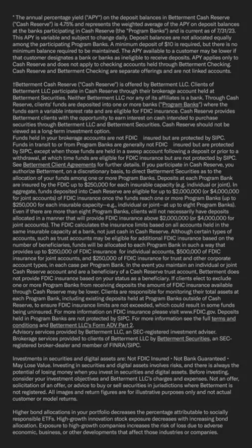 Checking accounts and the Betterment Visa Debit Card provided and issued by nbkc bank, Member FDIC. Checking made available through Betterment Financial LLC. Neither Betterment Financial LLC, nor any of their affiliates, is a bank.