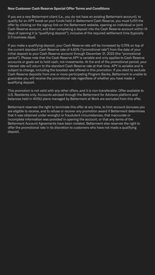 - Have a total Betterment balance of $20,000 or more across any accounts you hold at Betterment, or