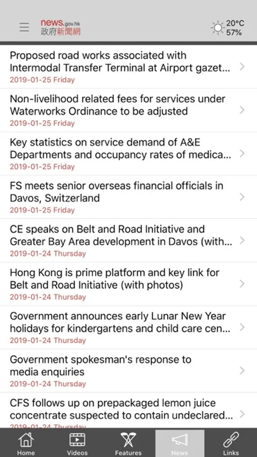 This app is produced by the Information Services Department of the Hong Kong SAR Government. It provides the latest contents of the government e-Bulletin website - https://www.news.gov.hk, including round-the-clock Hong Kong news; video news; features; official government press releases; and