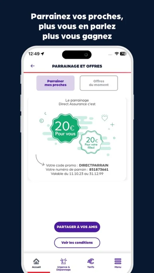 - Parrainage depuis l'appli, plus vous en parlez, plus vous gagnez : faites profiter vos filleuls des bons plans parrainage.