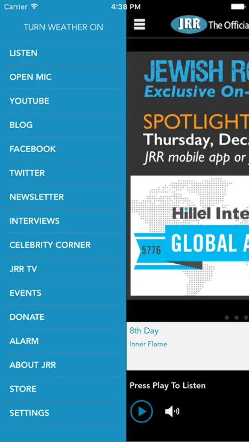 Jewish Rock Radio isn’t just about the music. JRR is a global communication channel for Jewish youth and young adults to communicate with each other about the wealth of opportunities for meaningful engagement and connection in the Jewish world. JRR broadcasts fresh programming including the Celebrity Corner interviews with top Jewish music artists and Youth Engagement Interviews with Jewish youth from coast-to-coast sharing exciting ways they are engaging in Jewish life. Jewish Rock Radio also exposes the work of brand new Jewish artists as well as the classic spins of long-established Jewish artists. JRR brings you front and center to Jewish world happenings and major events through the JRR live broadcast and JRR TV. The JRR mobile app gives you quick and easy access to every corner of the JRR universe.