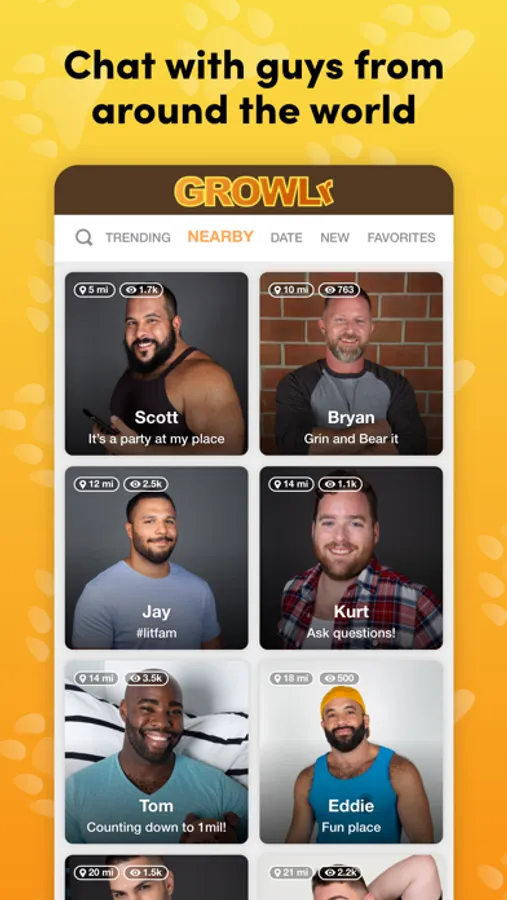 More Bears in More Places...we are a global community with over 10,000,000 members worldwide. GROWLr allows you to meet other Bears from around the world or around the corner. GROWLr is free, fast, reliable and easy to use.