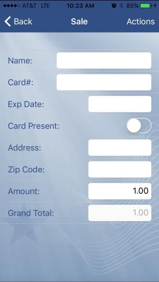 1.Swipe a credit card in the card reader or key in the credit card information.