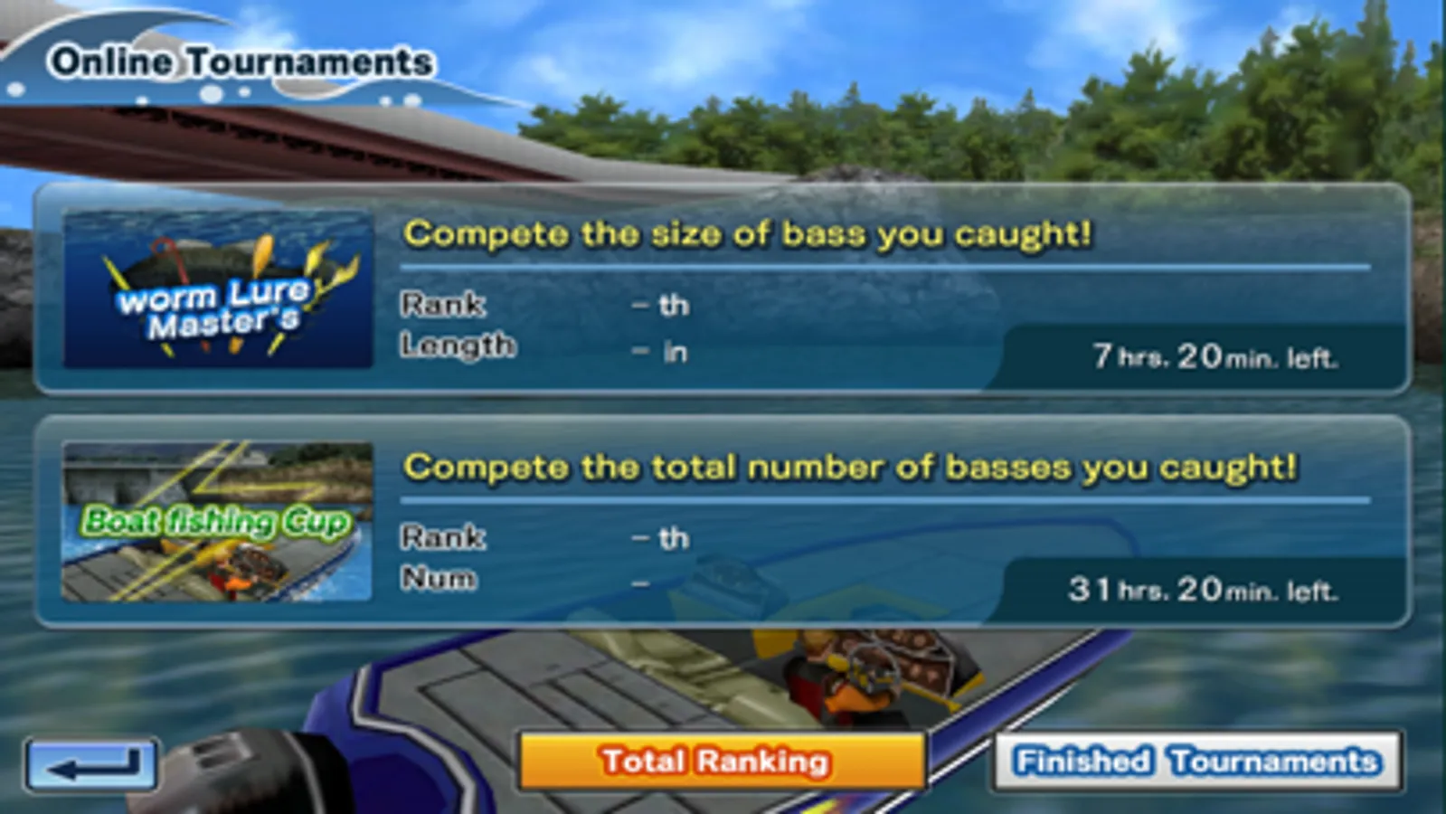 There are 3 kinds of game mode: Tournament, Challenge, and Free fishing.