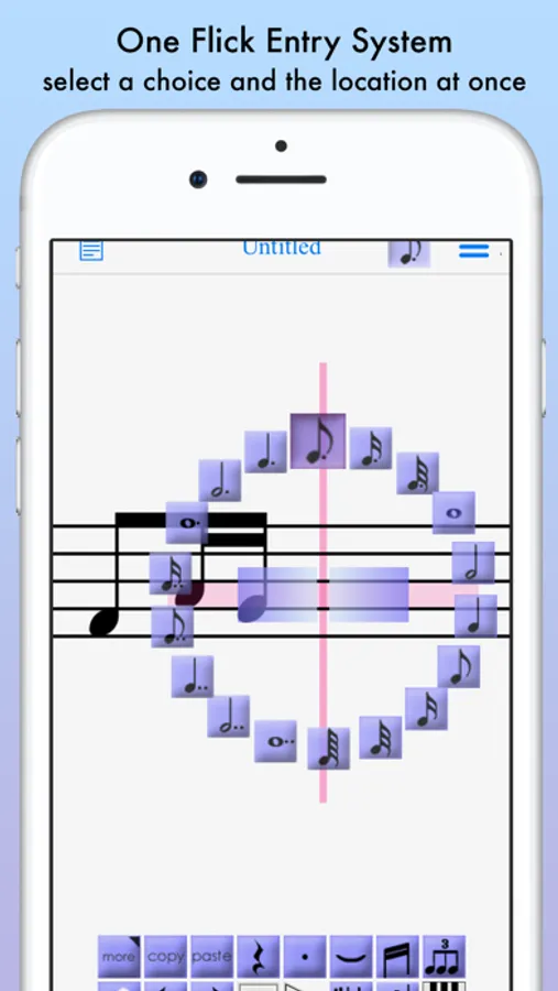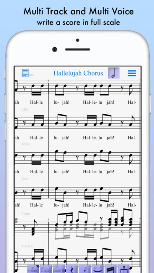 iWriteMusic enables efficient sheet music creation even on small smartphone screens.