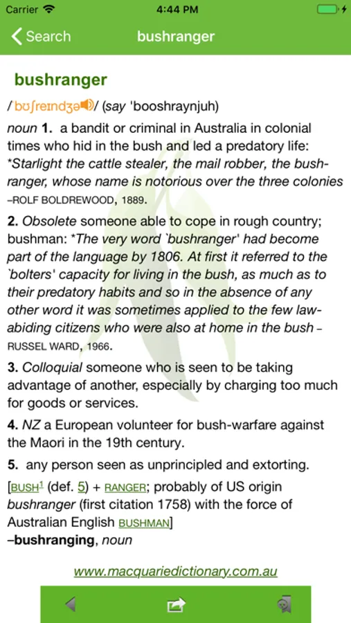 The Macquarie Complete Australian Dictionary app provides users with the most comprehensive, authoritative and up-to-date reference of Australian English. The app answers the needs of users on matters of spelling, pronunciation and usage for the complete record of English as it is used in Australia, from the colourfully colloquial to the highly technical.