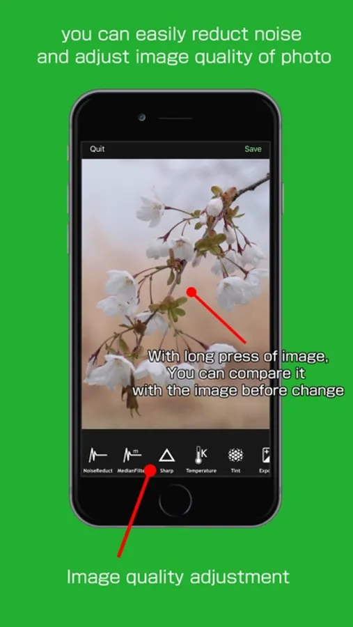 Noise Reduction, Median Filter(Noise Reduction), Sharp, Temperature, Tint, Exposure, Highlight, Shadow, Tone Curve 0-4, Saturation, Contrast, Bloom(Soft), Vignette