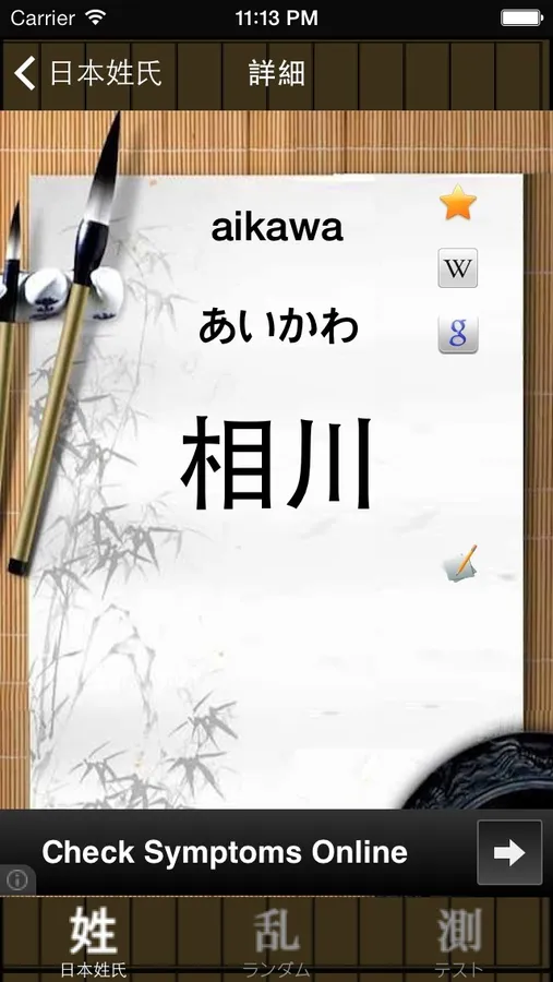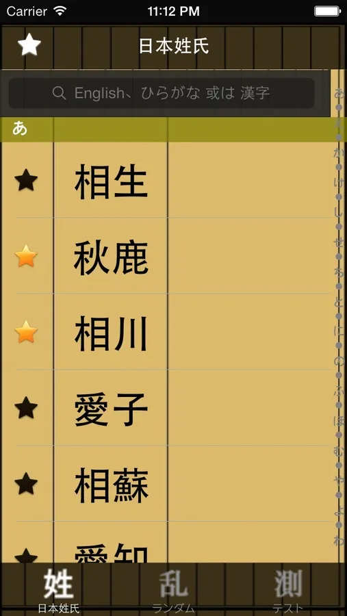1.五十音で日本の姓氏、ひらがな、Englishを参照する。(バージョン1.0で、1907個)