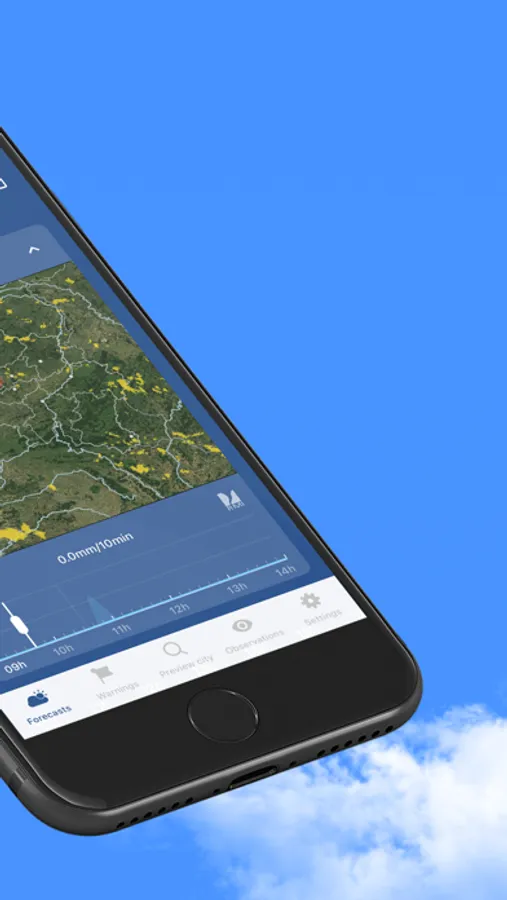 Observations et prévisions de pluie par pas de temps de 10 minutes pour vos communes favorites (jusqu'à 3 heures à l'avance).