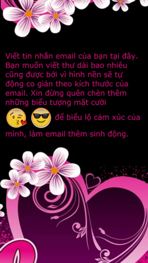 Hình Nền Email (www.HinhNenEmail.com) là app đầu tiên và duy nhất cho phép bạn nhanh chóng chèn hình ảnh nền thú vị, vui nhộn vào nội dung email. Hiện tại chúng tôi đã có hơn một nghìn mẫu hình nền email đẹp và độc đáo, đảm bảo email của bạn sẽ gây một ấn tượng sâu xắc cho người nhận.