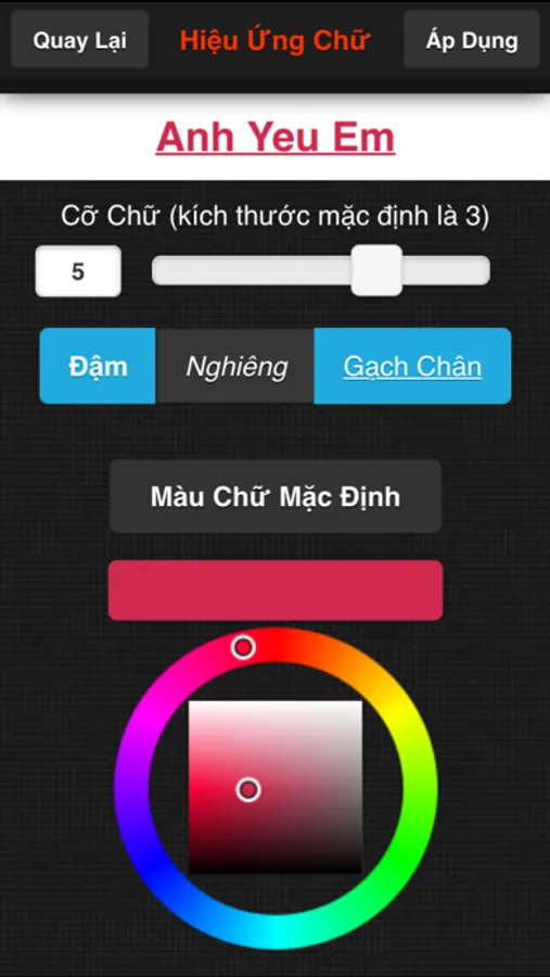 - Định dạng chữ: đậm, nghiêng, gạch chân, kích cỡ và màu chữ.
