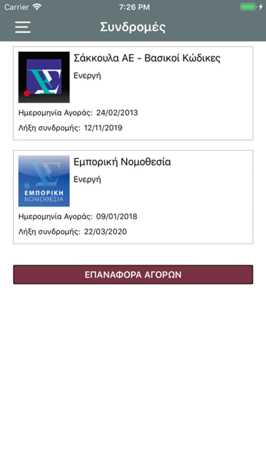 Σε περίπτωση που ο χρήστης δεν ανανεώσει τη συνδρομή του, θα εξακολουθήσει να έχει πρόσβαση στα κείμενα του προϊόντος που είχε αγοράσει, ως ίσχυαν κατά την ημερομηνία διακοπής της συνδρομής του.