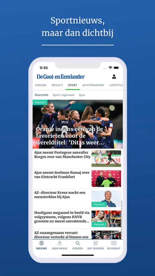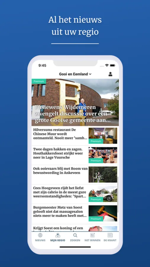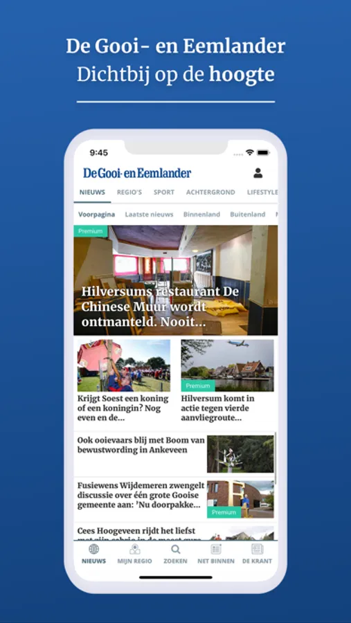 De nieuwsapp is gratis beschikbaar. In de app vindt u ook premium-artikelen. Deze stukken bieden het beste van De Gooi- en Eemlander en opinie van onze bekende columnisten. In de app zijn de premium-artikelen herkenbaar aan het groene label "Premium". Deze premium-stukken zijn toegankelijk voor abonnees van De Gooi- en Eemlander.