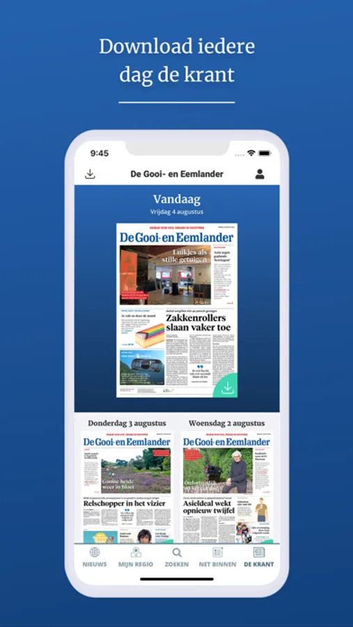 Volg het laatste nieuws uit de regio in de gratis nieuwsapp van De Gooi- en Eemlander. Met deze app mist u niets. Of het gaat om nieuws uit uw woonplaats of regio, regionaal en landelijk sportnieuws, entertainment of 112-nieuws, de nieuwsapp van De Gooi- en Eemlander houdt u op de hoogte!