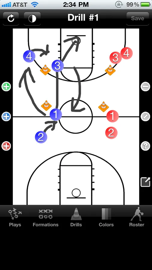 Basketball Coach Pro is a play editor, and team management app. Plays can be saved and exported as photos. Player's names can be added to rosters.