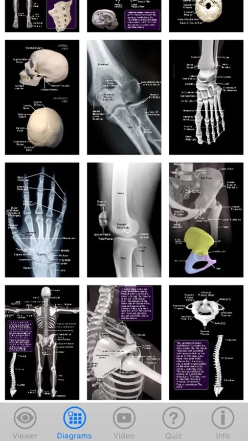 An amazing 3d exploration into the skeletal system. Test your knowledge of 140 bones and landmarks with our Speed Quiz in 3D (with audio), or expand your knowledge with the reference section, nine 3D models, 12 Diagrams, hundreds of images of real bones, plus video that discusses the skeletal system.