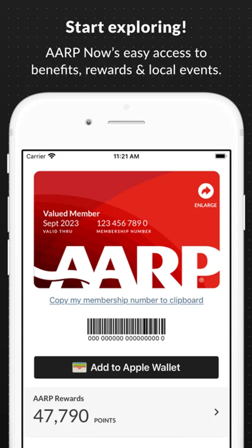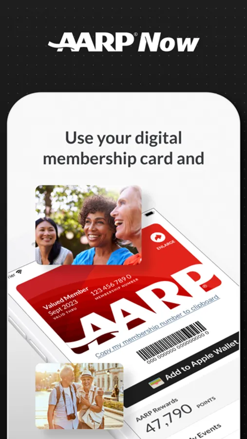 Get instant access to your digital membership card, add your card to your Apple Wallet, join AARP, or renew your membership in seconds. Plus, manage your account on the go!