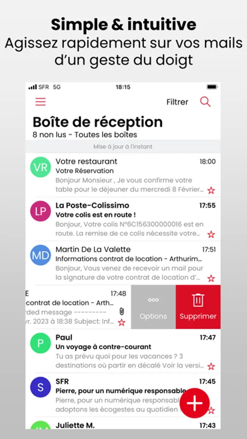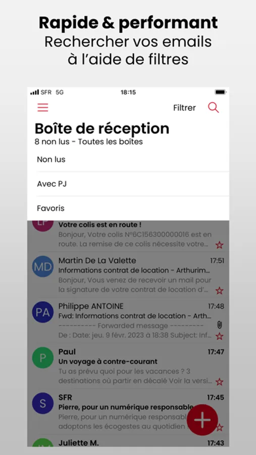 - Gérez et classez vos mails dans les dossiers. Tout est synchronisé avec le webmail SFR sur ordinateur