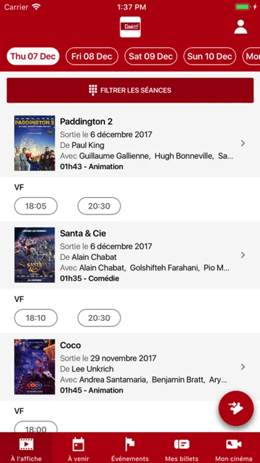 NE MANQUEZ PLUS VOS FILMS ET SÉANCES