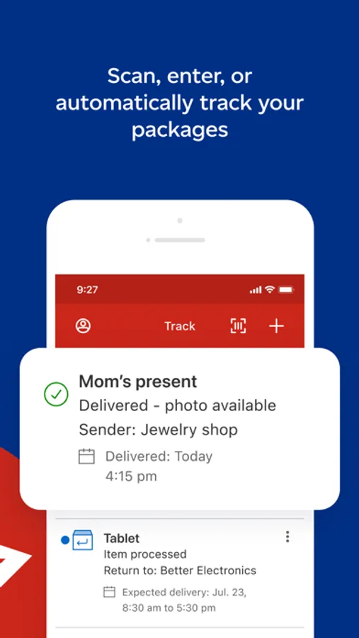 Manual package tracking by using a scanner or entering the package’s PIN into Track