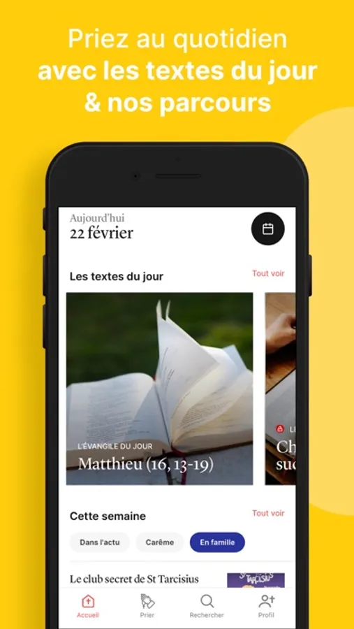 Prions en Église vous accompagne dans votre quotidien pour faciliter votre prière guidée ou sur mesure, pour vous aider à prier plus régulièrement et vous donner la joie et l’envie de prier davantage.