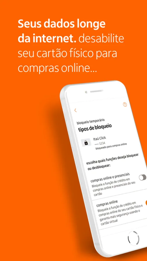 Juntos, nós protegemos em dobro! Faça suas compras online com mais segurança com bloqueio temporário do cartão de crédito físico e opte pelo cartão virtual!