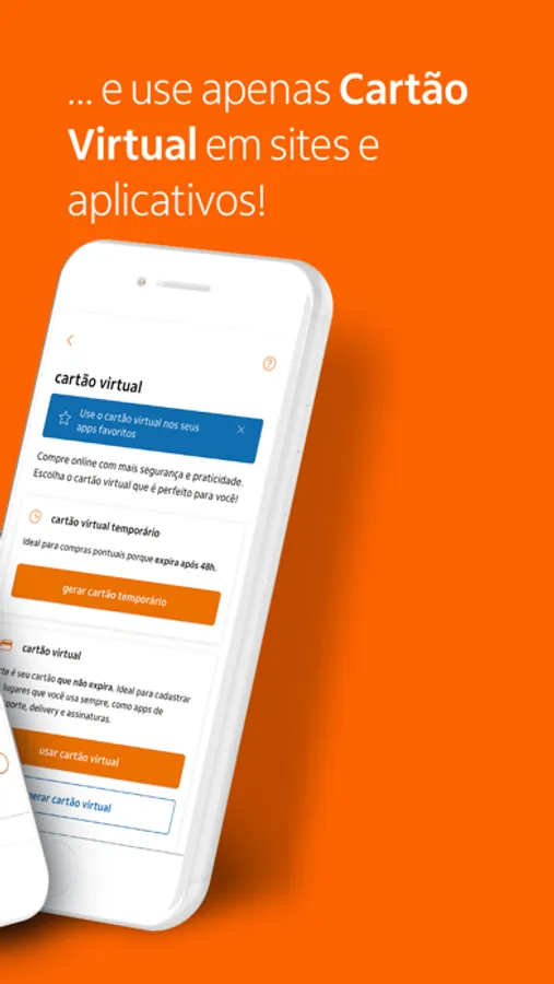 Pague suas assinaturas no cartão virtual ou faça compras online com cartão virtual temporário de forma totalmente segura! É gratuito e pode ser gerado pelo app.