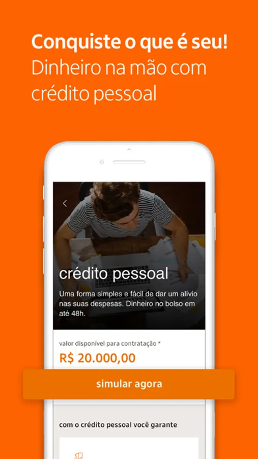 Concretize seus planos solicitando crédito pessoal no app! Dinheiro na conta em até 48h úteis.