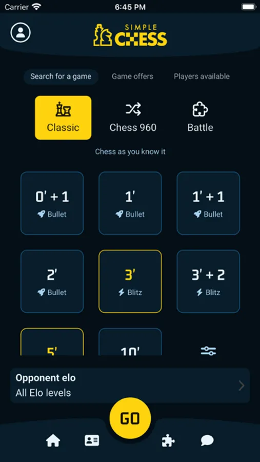 • Choose your game rating: fast, blitz, bullet, or create the rating of your choice