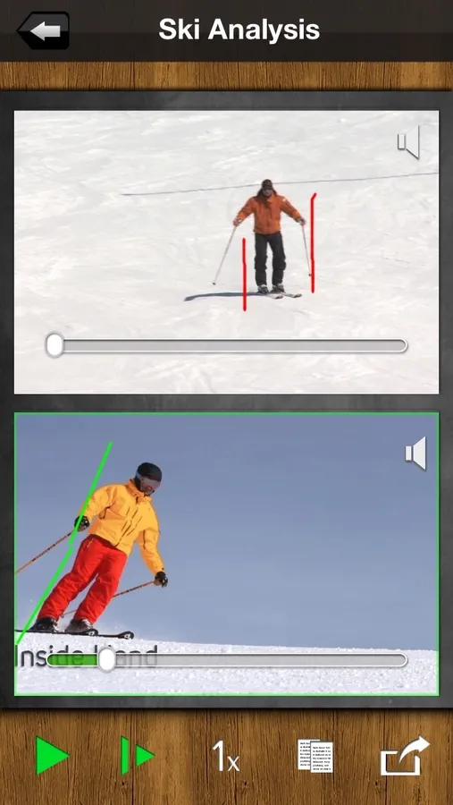Video recording capabilities (device permitting) allow you to compare your skiing with instructor demos using split screen video analysis. Draw on the screen to highlight points then share on social media.