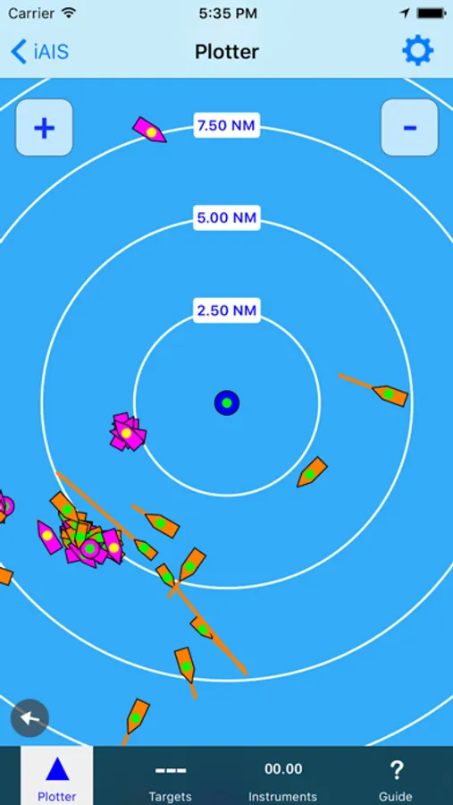iAIS is a simple AIS target plotter and NMEA data instrument designed for use with the DigitalYacht iAIS WiFi receiver. AIS targets are plotted relative to iPhone/iPod/iPad position. Tapping on an AIS target displays details (i.e. speed, course, destination, type, length, etc.). GPS and Wind data can also be viewed on the Instrument panel.