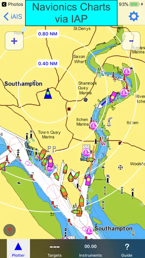 You can also display the AIS targets over your Navionics charts. With a one off In App purchase, iAIS can use all your existing Navionics charts with no additional charges for the charts.