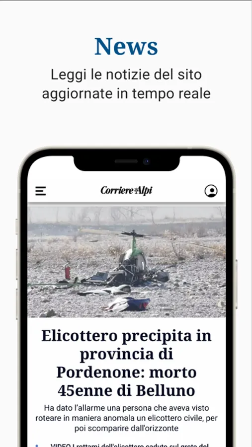 Tutte le notizie e le storie dall'Italia e dal mondo a portata di mano. L'applicazione Corriere delle Alpi ti offre, in un unico luogo, tutti contenuti di cui hai bisogno per informarti in ogni momento della giornata: notizie aggiornate in tempo reale, inchieste e approfondimenti, video, audioarticoli e altri contenuti multimediali, più il quotidiano da sfogliare in versione digitale.