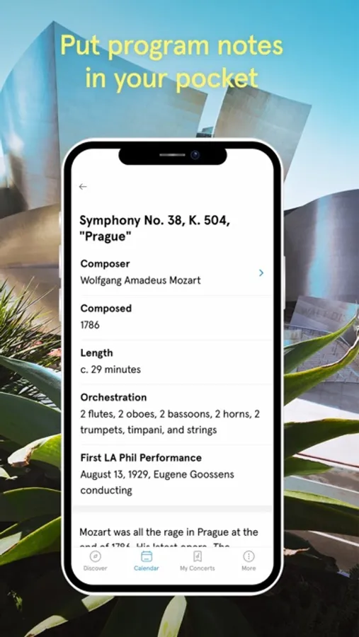 The LA Phil app is designed to help you get more out of your concert experience at Walt Disney Concert Hall.