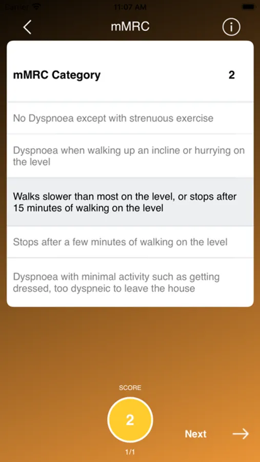 - Modified Medical Research Council Dyspnoea Scale (mMRC)