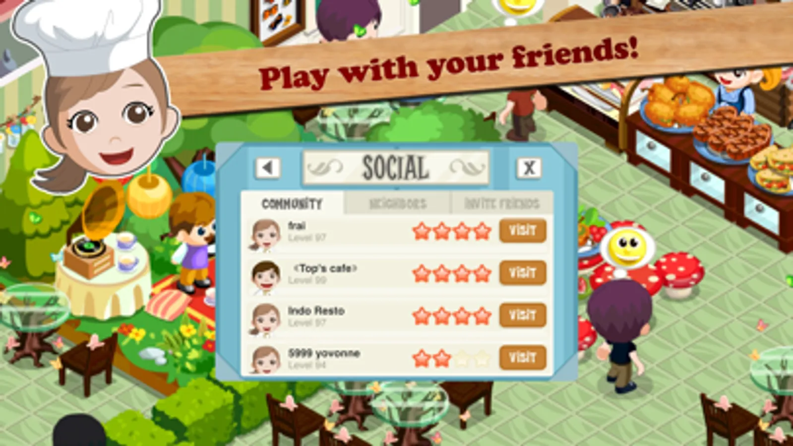 - INVITE Facebook friends to set up shop right next door! Share secret recipes!