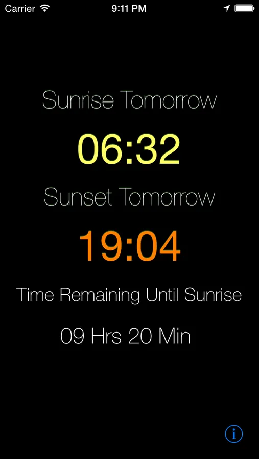 From your GPS-computed position, Sun Times easily calculates the Sunrise, Sunset, and time until the next Sunrise or Sunset. Perfect for planning outdoors activities such as running, hiking, and biking.