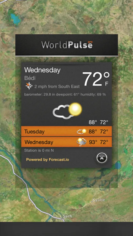 Or just check the weather which shows current conditions for any point on the globe where there is a nearby weather station for conditions in the last hour, and very accurate forecasts for the next two days.