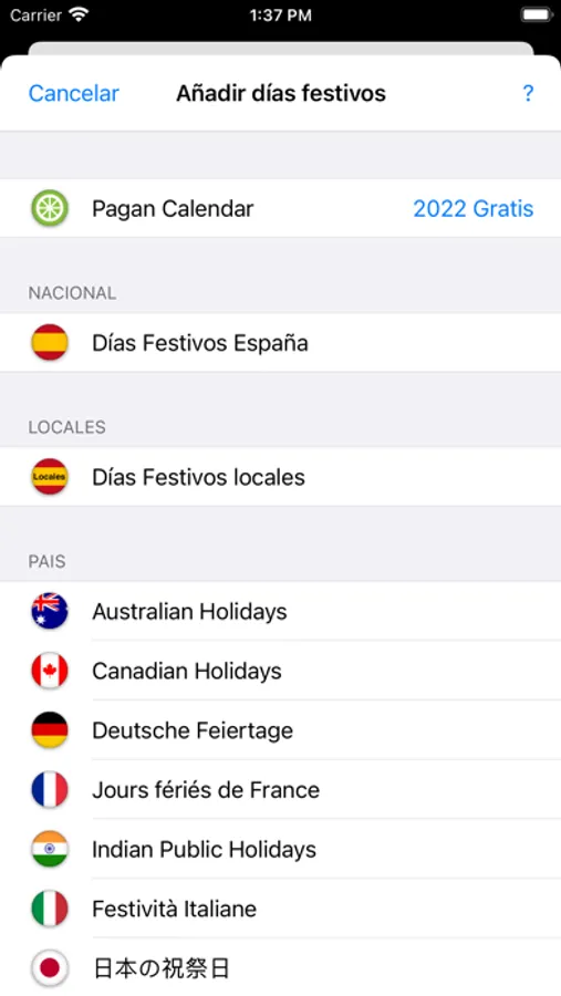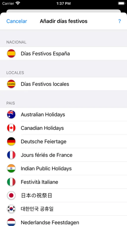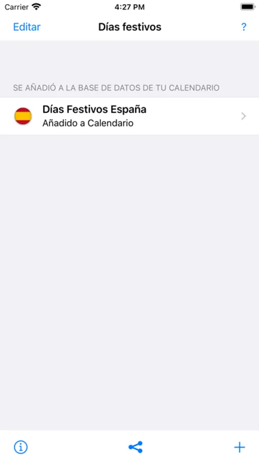 Con un simple toque introduce las fiestas españolas en tu calendario del iPhone. Los días festivos serán añadidos como eventos para todo el día en el calendario de tu elección.