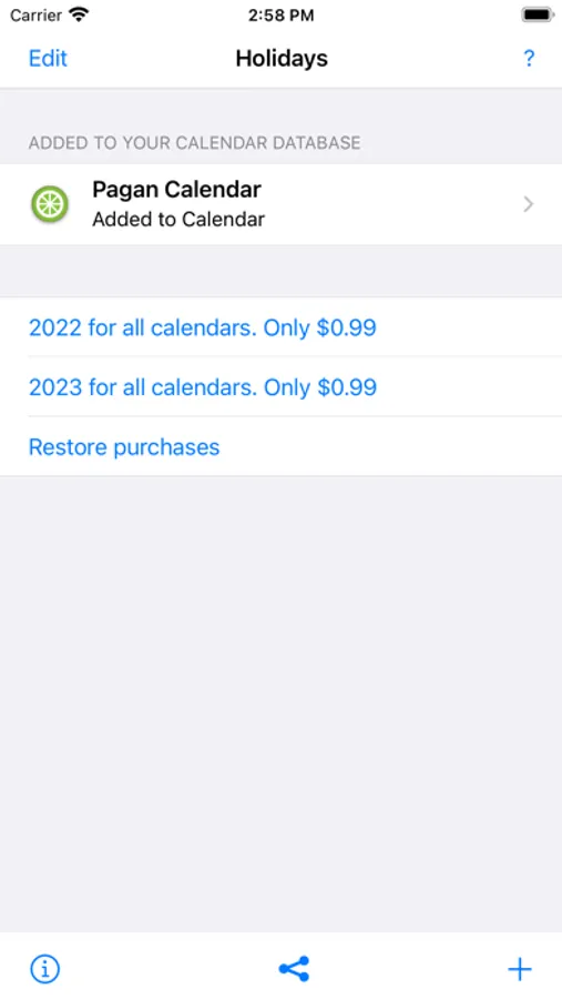 - No subscriptions, you buy the holidays of one year for all calendars.