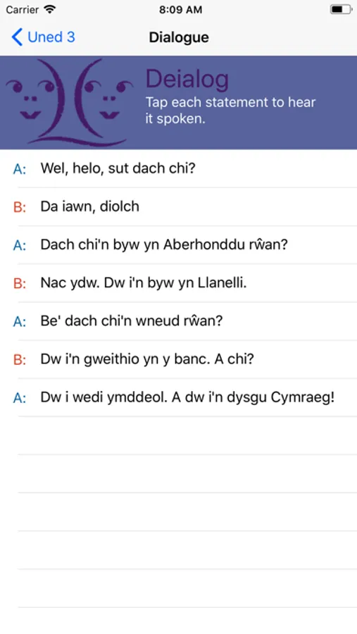 The App is designed to help beginners that are following the Cwrs Mynediad course book. Even if you aren’t following the course, the App provides material suitable for anyone interested in learning the language.