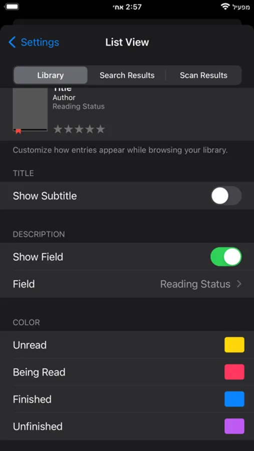 • Reading Status — filter your books by their reading status.