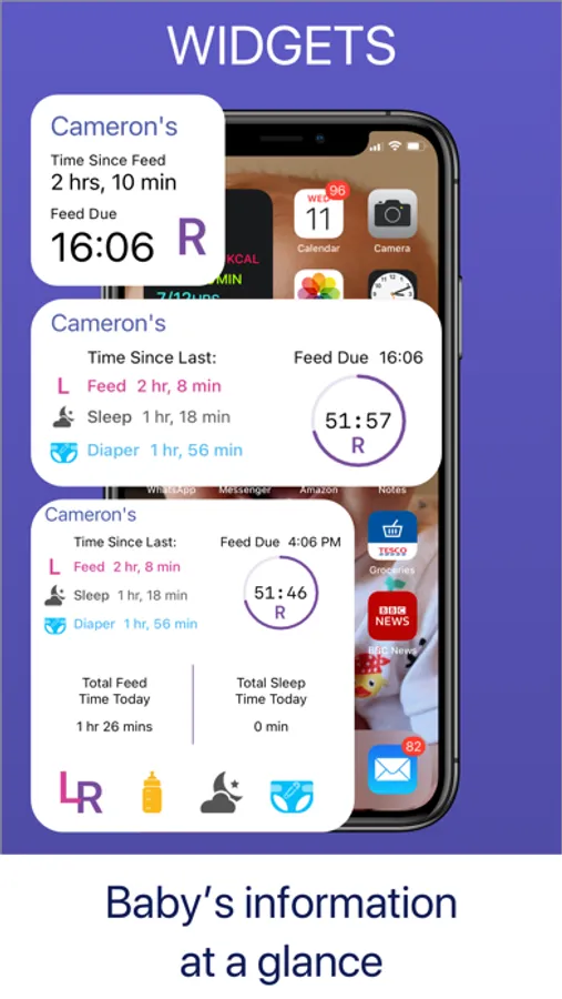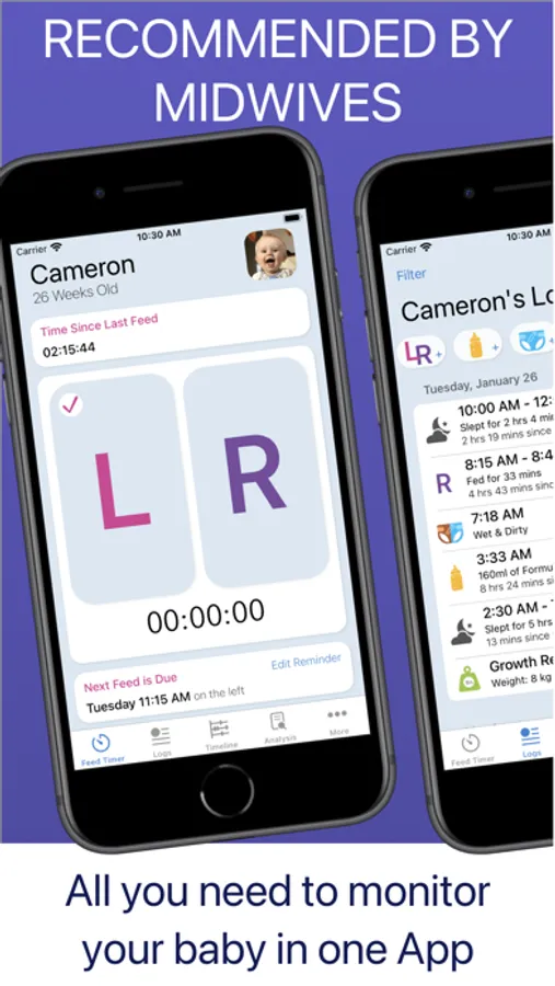√ At a glance view of how long since baby last fed, next feed time and which breast to use next